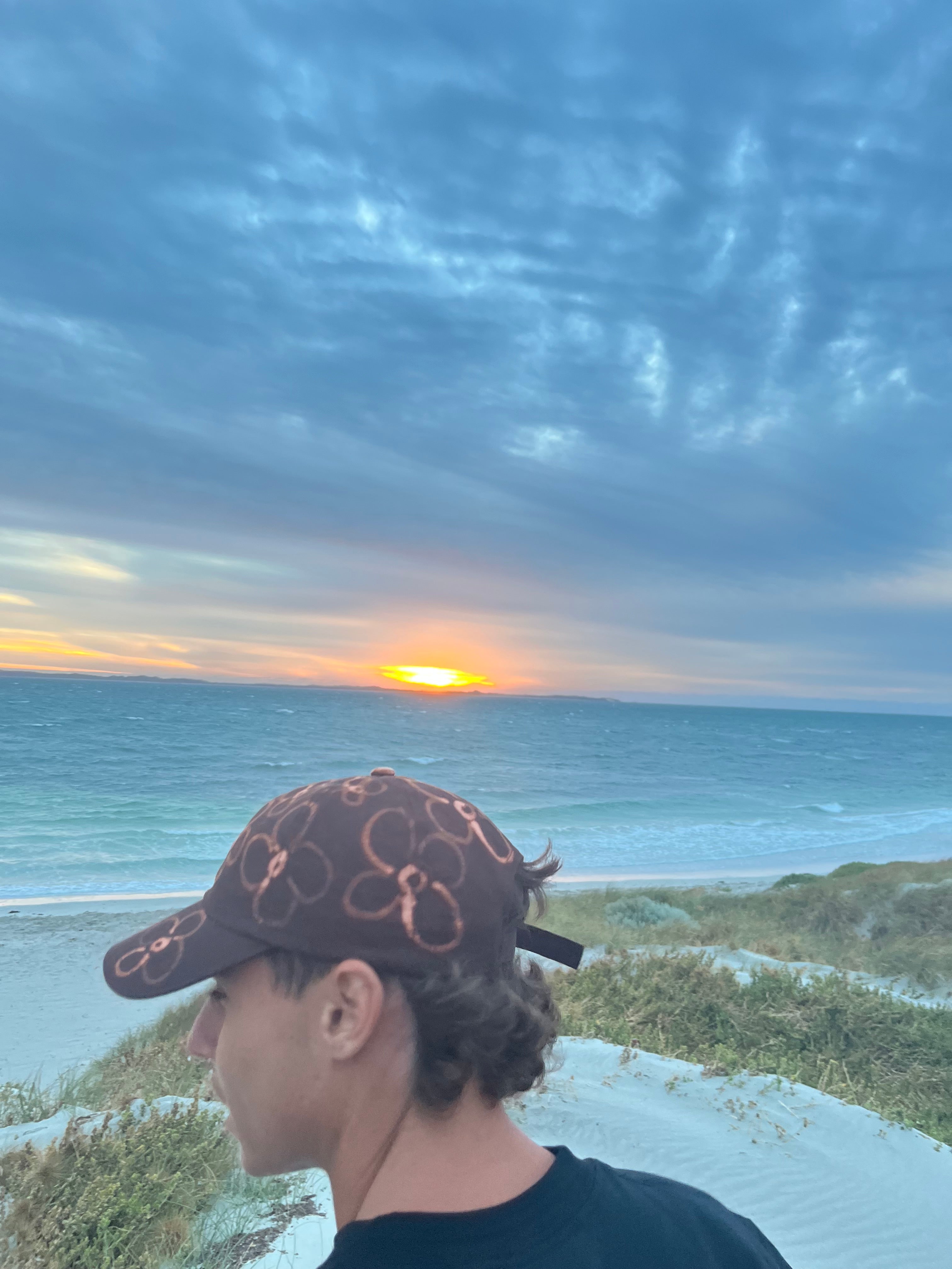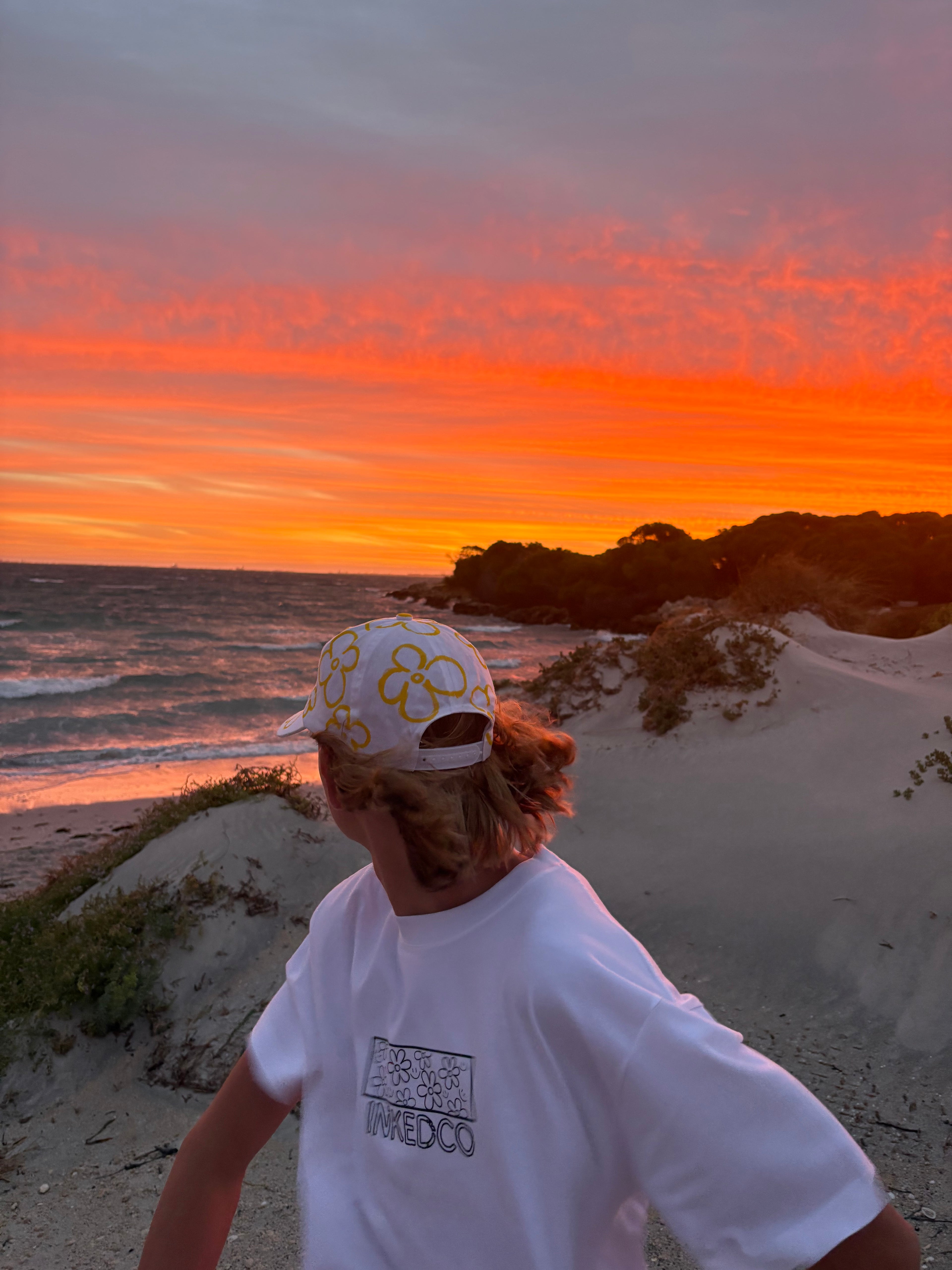 The Twilight Summer captures that in-between moment when the sun dips low and the air cools, but the day isn’t over yet. Featuring a dark, muted base with soft floral detailing, this cap reflects long summer evenings by the coast and sunsets that fade slowly into night.